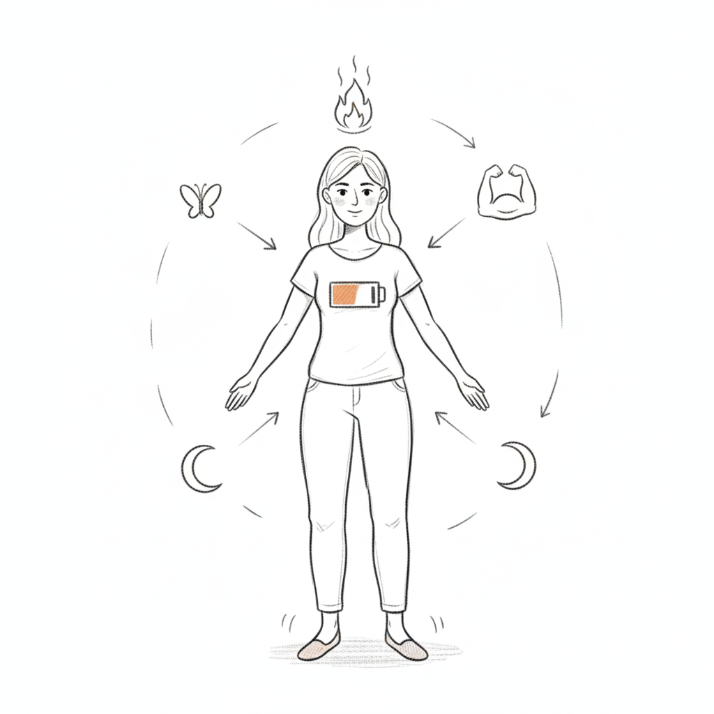 Viele Frauen erleben zusätzlich Zyklusunregelmäßigkeiten oder Stimmungsschwankungen, weil hormonelle Systeme sehr sensibel auf Energiemangel reagieren.